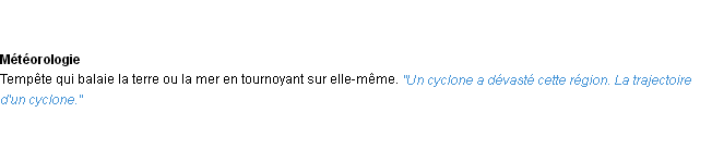 Définition de l’équipe de la-definition.fr (édition de 2009) pour le mot « cyclone ».Merci à Basile et Adrienne pour la numérisation du mot cyclone.