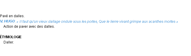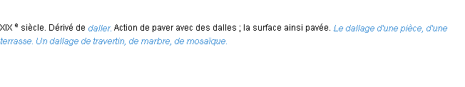 Définition développée dans dictionnaire d’Emile Littré (ancienne édition de 1876).Merci à Jacques et Arianne pour la numérisation du mot dallage.