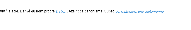 Signification développée en 1932 par l’académie Française (ACAD - 1932).Merci à Corin et Paule pour la numérisation du mot daltonien.