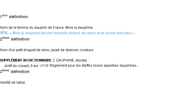 Définition développée dans dictionnaire d’Emile Littré (ancienne édition de 1876).Merci à Angèle et Arienne pour la numérisation du mot dauphine.