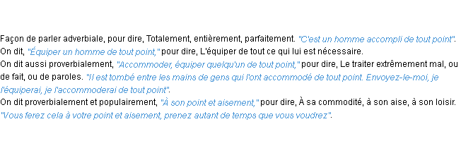 Ancienne signification éditée en 17962 pour le terme « de tout point » par l’Académie Française.