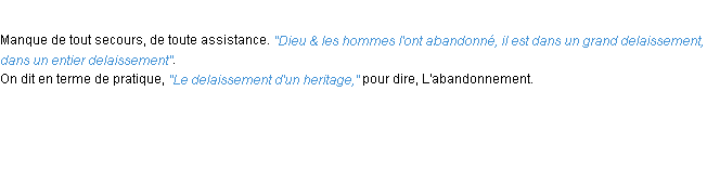 Ancienne définition de « delaissement » de source académique (Académie Française, parution de 1694).