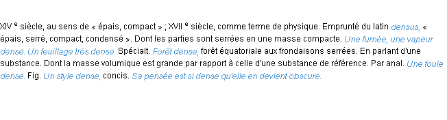 Signification éditée en 1932 pour le terme « dense » par l’Académie Française.