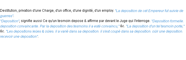 Définition du mot « deposition » (source wiktionary 2011).