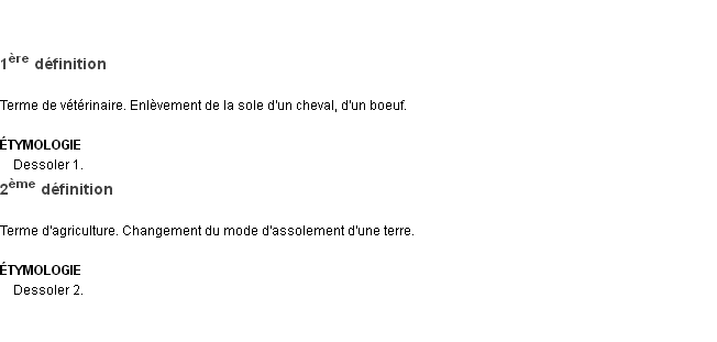 Signification du terme « dessolure », parution de 1876 (dictionnaire le Littré).