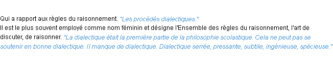 Ancienne signification du terme « dialectique », parution de 1798, dictionnaire académique Français.Merci à Fiacre et Solange pour la numérisation du mot dialectique.