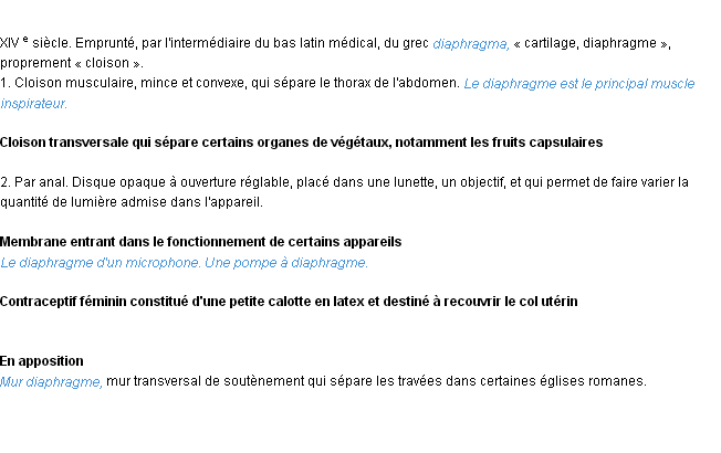 Ancienne signification issue du dico de l’Académie Française, parue en 1798.Merci à Sylvain et Sébastien pour la numérisation du mot diaphragme.