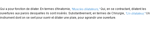 Définition issue du dictionnaire wiktionary pour le mot « dilatateur ».Merci à Mignon et Clémence pour la numérisation du mot dilatateur.