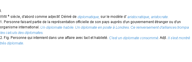 Signification éditée en 2010 par l’équipe de la-definition.fr.Merci à Andrée et Corin pour la numérisation du mot diplomate.