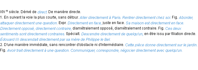 Signification éditée en 1932 pour le terme « directement » par l’Académie Française.