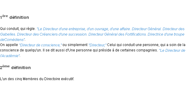 Ancienne signification éditée en 1835 pour le terme « directeur » par l’Académie Française.