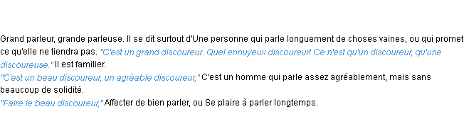 Définition « discoureur » du dictionnaire académique Français, parution de l’année 1986.