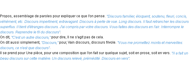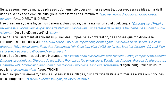 Ancienne définition du mot « discours » par l’Académie Française (édition de 1835).