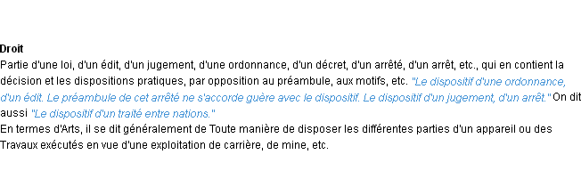 Définition « dispositif » du dictionnaire académique Français, parution de l’année 1932.