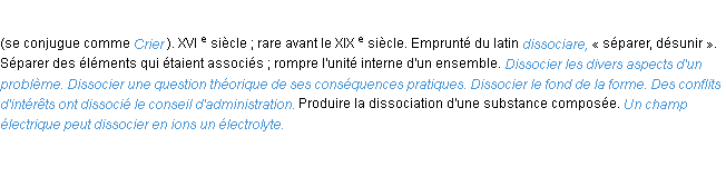 Signification du terme « dissocier », parution de 1876 (dictionnaire le Littré).Merci à Colombain et Arnaud pour la numérisation du mot dissocier.