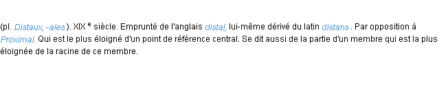 Définition « distal » du dictionnaire académique Français, parution de l’année 1986.
