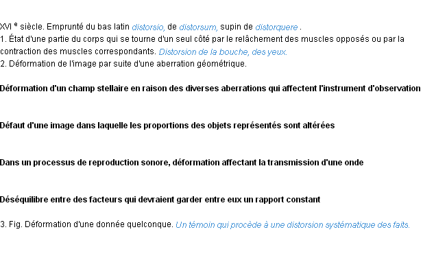 Signification éditée en 2010 par l’équipe de la-definition.fr.Merci à Apolline et Alain pour la numérisation du mot distorsion.