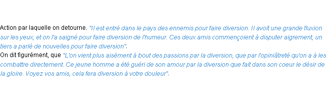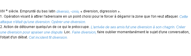 Signification éditée en 1932 pour le terme « diversion » par l’Académie Française.