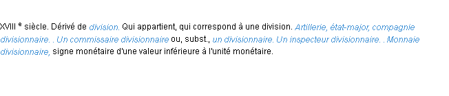 Ancienne définition académique pour le terme « divisionnaire » (parue en 1835).