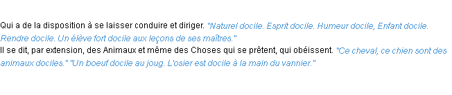 Signification éditée en 1986 pour le terme « docile » par l’Académie Française.