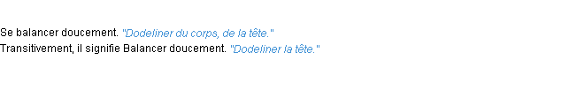 Définition d’Emile Littré (édition de 1876) pour le mot « dodeliner ».Merci à Noémie et Henriette pour la numérisation du mot dodeliner.