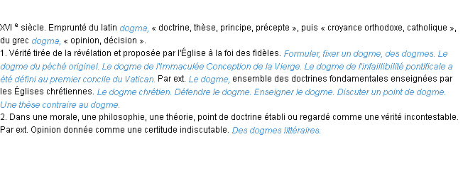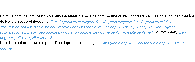 Signification du terme « dogme », parution de 1932, dictionnaire académique Français.