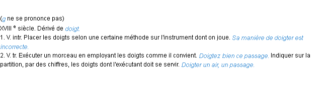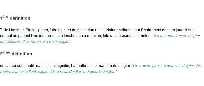 Signification éditée en 1932 pour le terme « doigter » par l’Académie Française.