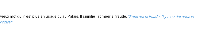 Ancienne signification du terme « dol », parution de 1798, dictionnaire académique Français.Merci à édith et Mathieu pour la numérisation du mot dol.