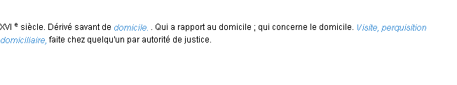 Ancienne définition « domiciliaire » du dictionnaire académique Français, parution de l’année 1835.