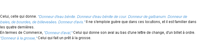 Définition du mot « donneur » par l’Académie Française (édition de 1932).