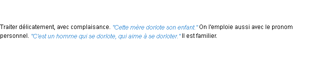 Définition académique pour le terme « dorloter » (parue en 1986).