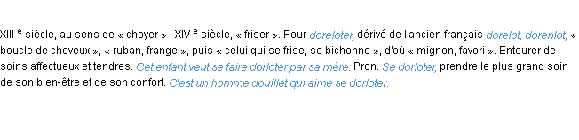 Ancienne signification issue du dico de l’Académie Française, parue en 1798.Merci à Aurèle et Martine pour la numérisation du mot dorloter.