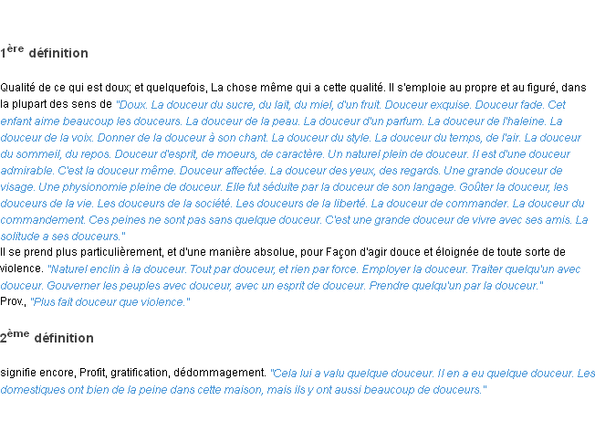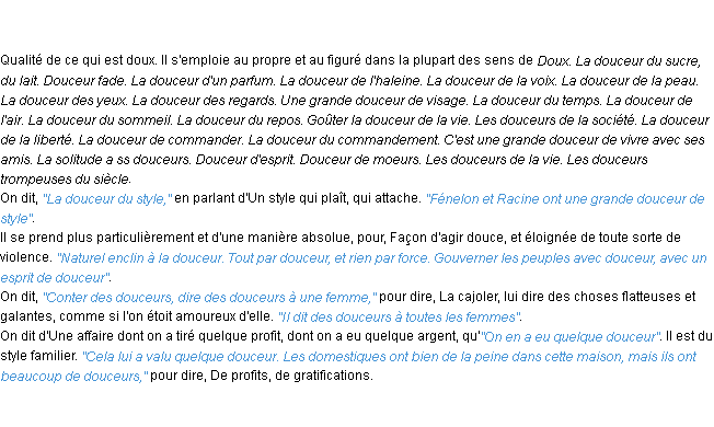 Ancienne signification éditée en 1835 pour le terme « douceur » par l’Académie Française.