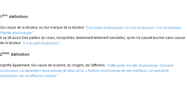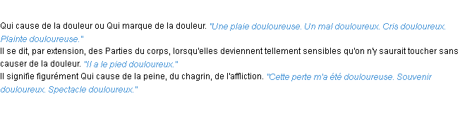 Ancienne signification éditée en 1835 pour le terme « douloureux » par l’Académie Française.