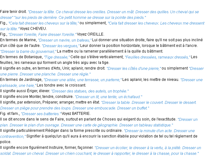 Ancienne définition académique pour le terme « dresser » (parue en 1835).