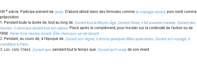Signification éditée en 1986 pour le terme « durant » par l’Académie Française.
