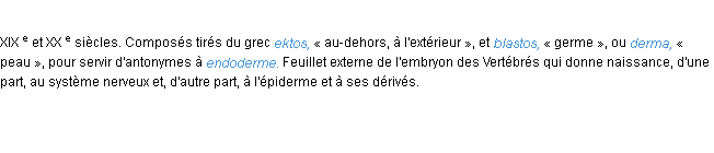 Définition académique pour le terme « ectoblaste » (parue en 1986).
