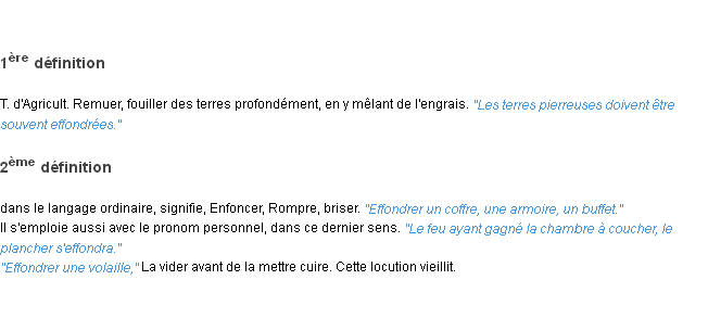 Ancienne définition de l’Académie Française (édition de 1798) pour le mot « effondrer ».Merci à Théodore et Joceline pour la numérisation du mot effondrer.