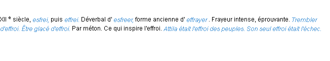 Ancienne définition « effroi » du dictionnaire académique Français, parution de l’année 1835.