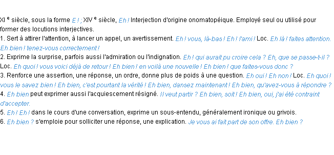 Définition académique pour le terme « eh ! » (parue en 1986).