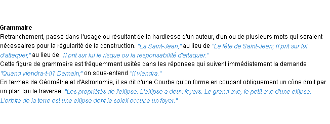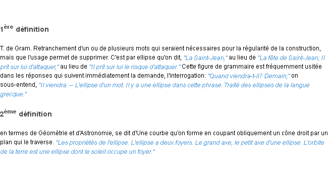 Définition du mot « ellipse » par l’Académie Française (édition de 1986).
