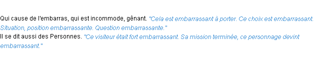 Signification du terme « embarrassant », parution de 1932, dictionnaire académique Français.