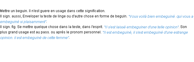Ancienne définition du mot « embeguiner » par l’Académie Française (édition de 1694).