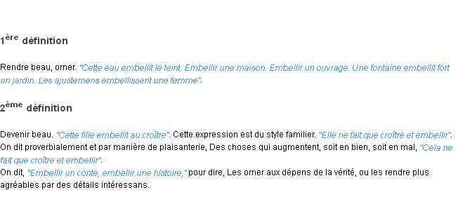 Ancienne définition du mot « embellir » par l’Académie Française (édition de 1798).