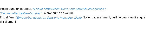 Signification du terme « embourber », parution de 1932, dictionnaire académique Français.