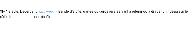 Définition issue du dictionnaire wiktionary pour le mot « embrasse ».Merci à Berthe et Eléonore pour la numérisation du mot embrasse.