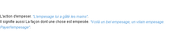 Ancienne signification parue en 1798 dans dictionnaire de l’Académie Française.Merci à Gratien et Pascale pour la numérisation du mot empesage.