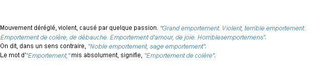 Signification du terme « emportement », parution de 1932, dictionnaire académique Français.