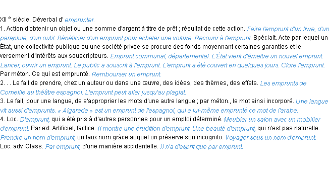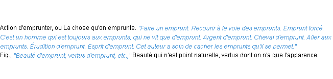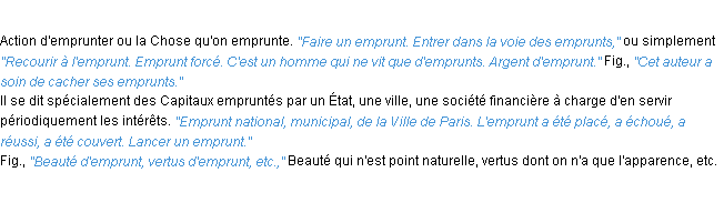 Ancienne signification du terme « emprunt », parution de 1835, dictionnaire académique Français.
