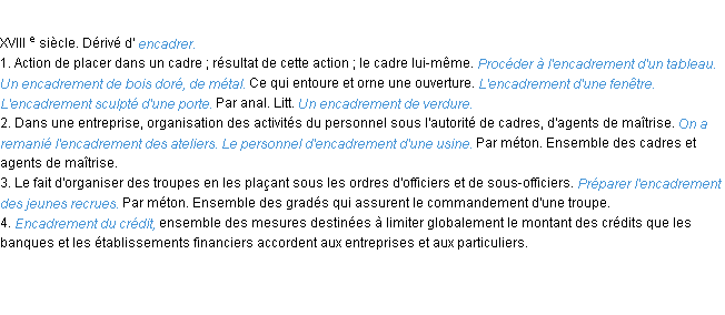 Définition académique pour le terme « encadrement » (parue en 1932).